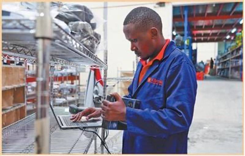 肯尼亚首都内罗毕近郊的电商企业Kilimall仓库内,当地工作人员在复核订单。本报记者 黄炜鑫摄