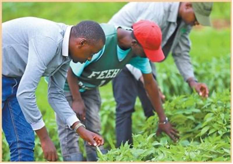 在卢旺达加绍拉农场,当地农业技术员查看辣椒长势。新华社记者 吉 莉摄