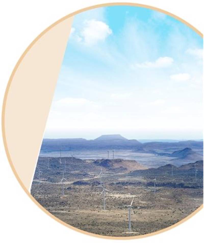 在南非北开普省德阿镇拍摄的德阿风电项目风机。该项目由中国国家能源集团龙源电力南非公司建成投运,总装机容量24.45万千瓦。新华社记者 韩 旭摄