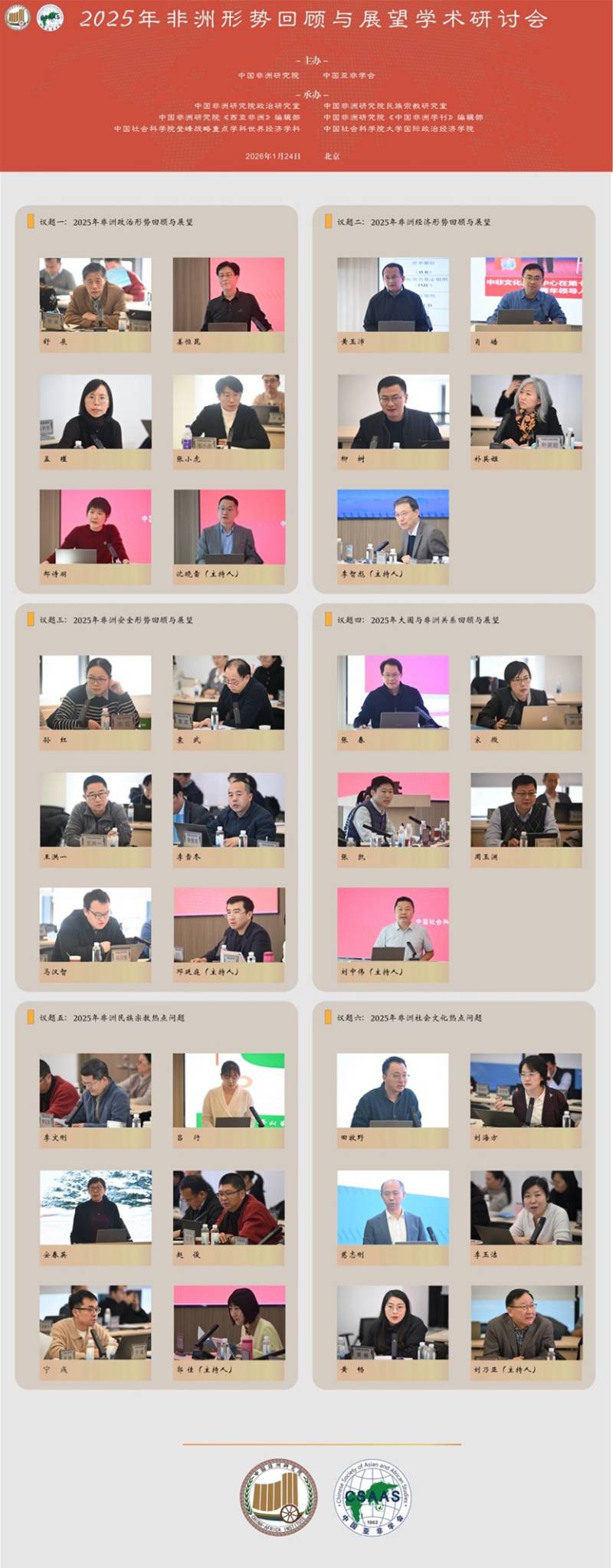 研讨会由中国非洲研究院、中国亚非学会共同主办,中国非洲研究院政治研究室、民族宗教研究室、《西亚非洲》编辑部、《中国非洲学刊》编辑部、中国社会科学院登峰战略重点学科世界经济学科、中国社会科学院大学国际政治经济学院联合承办。